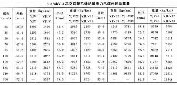 3.6-6KV3芯电力电缆外径及重量